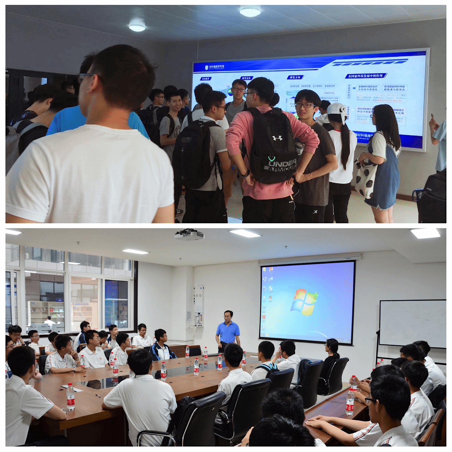 副院长马飞等为大一新生和少年班学生讲述了国重室历史沿革和取得的丰硕成果。马飞教授讲到材料在国民经济和日常生活中的战略性和重要性,鼓励学生认真学习基础理论知识,努力钻研,走进材料世界,探索迷人材料。