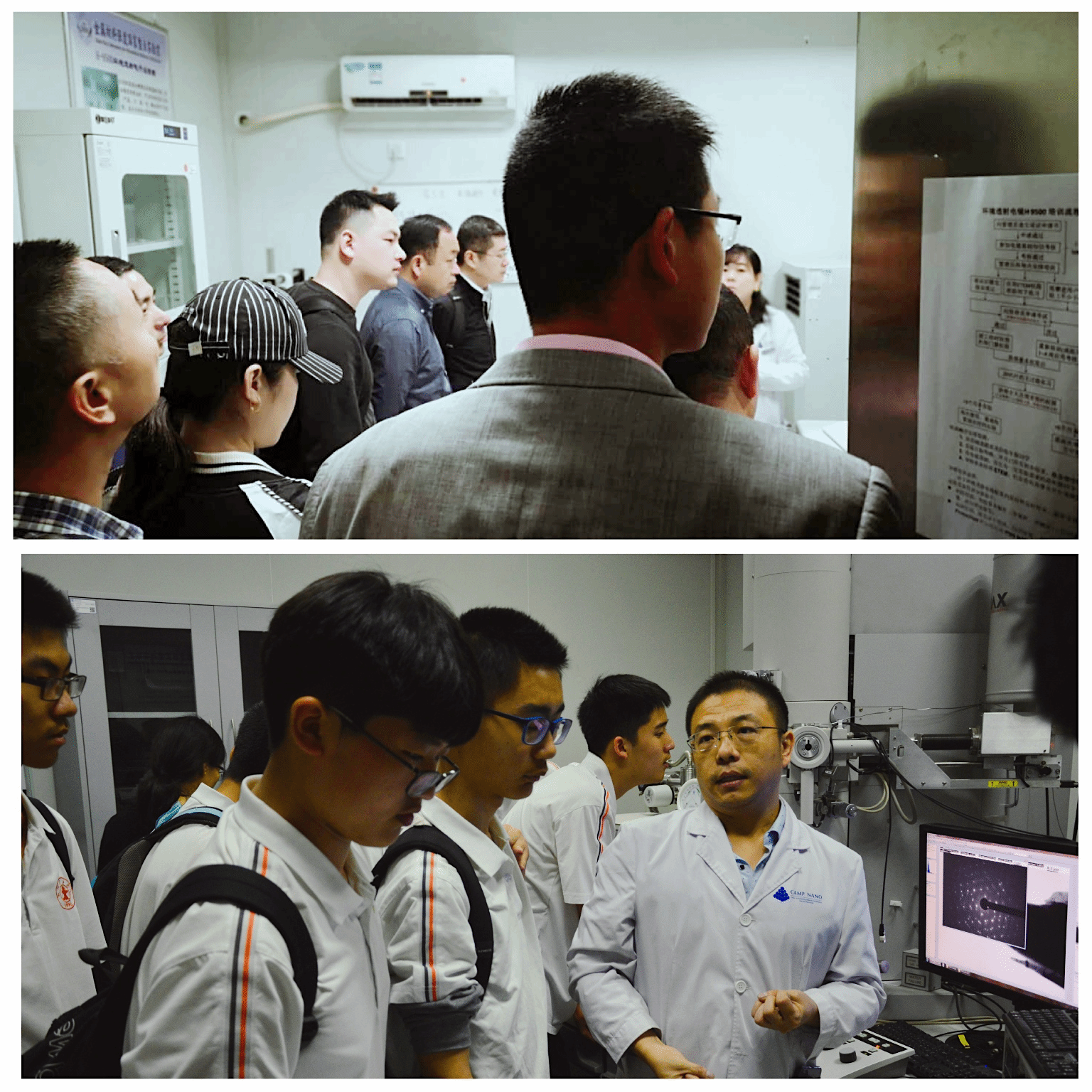 先进的仪器设备是科学研究的基础,也是科学研究发展中的产物。实验技术中心秦元斌、张丹利、付琴琴等老师为大家详细讲解了诸如聚焦离子束、环境透射电子显微镜、多场耦合纳米力学测试设备等的用途及原理,并现场演示部分实验过程,让学生们近距离地接触科研世界。